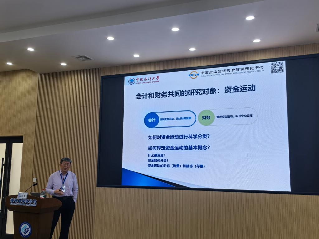 2025年6月7日上午,“MPAcc会计名家公益大讲堂”在金盆岭校区经管大楼100报告厅举行。中国海洋大学管理学院院长王竹泉教授做了题为《资金管理创新的理论基础与概念框架》的学术报告。财会系教师和财会方向研究生参加了本次讲座,讲座由学院副院长王治主持。