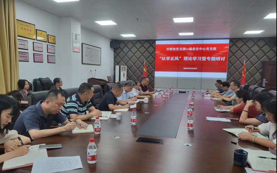 6月20日上午,计财处党支部和信息化处党支部在图书馆A911室联合举行“以学正风”理论学习暨专题研讨。校党委委员、副校长谈传生到会指导。计财处党支部和信息化处党支部全体党员参加。