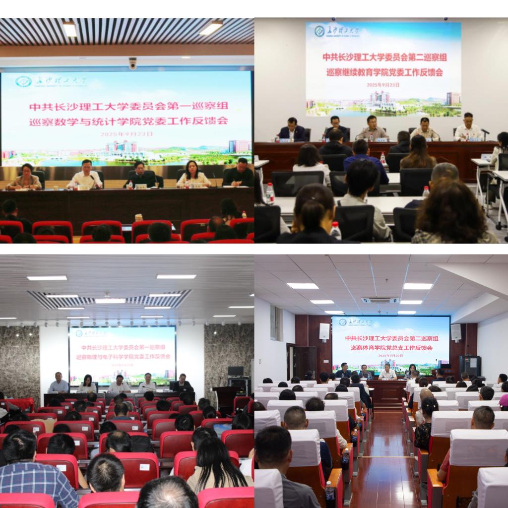 9月23日、30日,第七轮校内巡察工作反馈会议在相关学院召开。各巡察组分别向数学与统计学院党委、继续教育学院党委、物理与电子科学学院党委、体育学院党总支反馈了巡察情况。副校长陈世平,校党委委员、副校长刘朝晖、张军辉、王磊分别出席相关学院反馈会并讲话。巡察办相关负责人,各巡察组组长、副组长,被巡察单位全体教职工参加反馈会。
