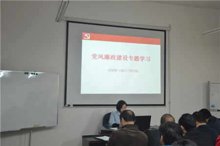 10月25日下午,计通学院在理科楼B302召开党风廉政建设专题学习会,学院中层以上干部全部参加学习,会议由方琼主持。