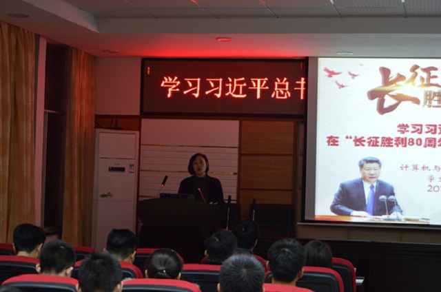 2016年10月31日,计通学院在云塘校区理科楼B311会议室召开了以“学习习近平总书记在‘长征胜利80周年纪念大会’上的讲话”为主题的党员大会。出席大会的有计通学院党委书记方琼、党委副书记王任飞,计通学院全体学生党员。大会由计通学院学生党总支副书记潘枝花、党员代表左明科主持。