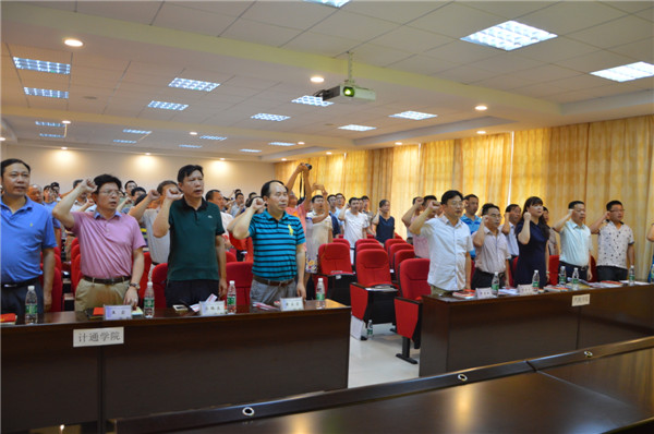 7月11日上午,计通学院与汽机学院联合开展的“两学一做”专题学习暑期集中训练营在理科楼B311举办开班仪式。校党委副书记邹宏如、副校长黄立宏、校党委组织部部长齐路良、宣传部部长王宏、学工部部长黄自力出席开班仪式,计通学院和汽机学院120余名党员参加培训。仪式由计通学院党委书记方琼主持。