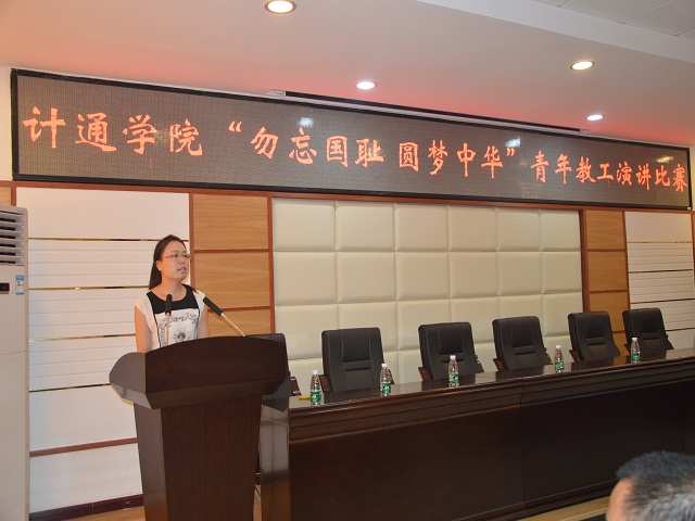 98日下午,我院 “勿忘国耻 圆梦中华”—庆祝中国人民抗日战争暨世界反法西斯战争胜利70周年主题青年教职工演讲比赛决赛在理科楼B311隆重举行。学院全体院领导和教职工出席了观摩。比赛由工会副主席谌海军主持。经选拔而出来的来自全院各党支部的6名参赛选手参加了决赛。