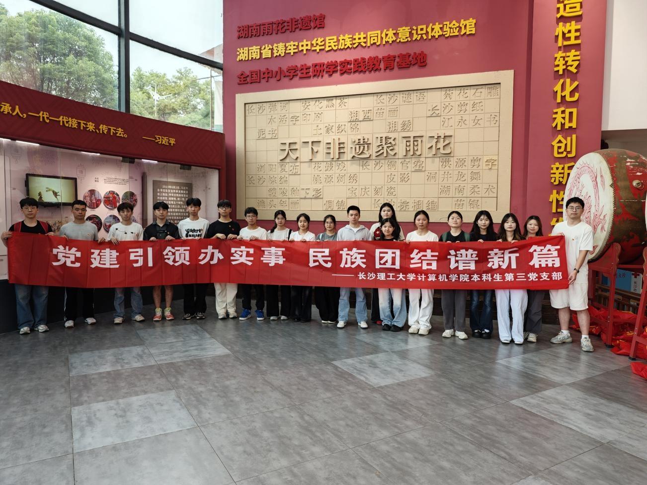 为深化党员对中华民族共同体意识的理解,增强民族团结进步的思想自觉6月17日,计算机学院本科生第三党支部组织全体党员前往湖南省铸牢中华民族共同体意识体验馆(长沙),开展党建引领办实事民族团结谱新篇”主题党日活动。通过沉浸式参观、互动式体验与专题研讨,深入感受湖湘大地民族交融的历史脉络与时代价值。