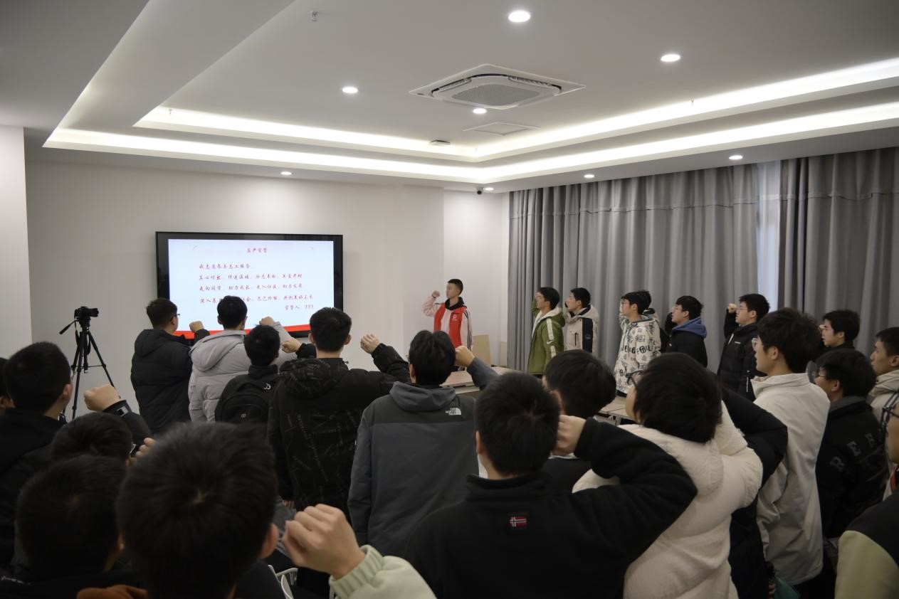 “热爱祖国、艰苦奋斗、乐于助人……”,问及雷锋精神的具体内涵,同学们争相发言,新生团支部的主题宣讲现场气氛热烈。袁诚功同学图文并茂,倾情介绍雷锋精神并分享他在湘潭市图书馆等地担任志愿者的所见所感。一张张图片里,长理青年的“红马甲”形象愈发彰显,和谐互助的氛围在雷锋家乡蔚然成风。活动最后,袁诚功带领全体同学慷慨宣誓,誓言铿锵,掷地有声,激情诠释了长理学子投身于志愿服务的热情和心怀祖国服务社会的大志。