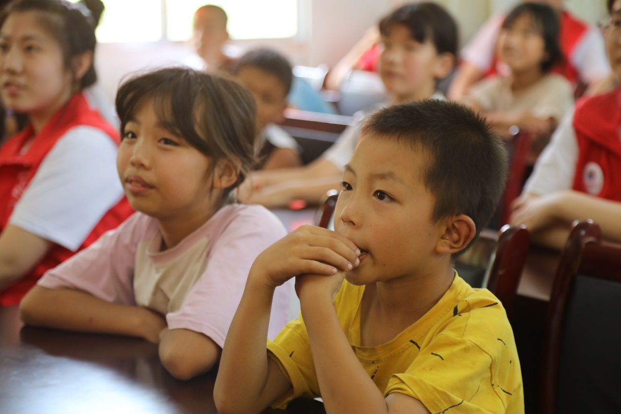 在网络安全和防诈骗课堂教室,志愿者通过场景演绎及案例讲解的形式,将密码保护、个人信息保护及上网安全等知识向小朋友们进行讲解。