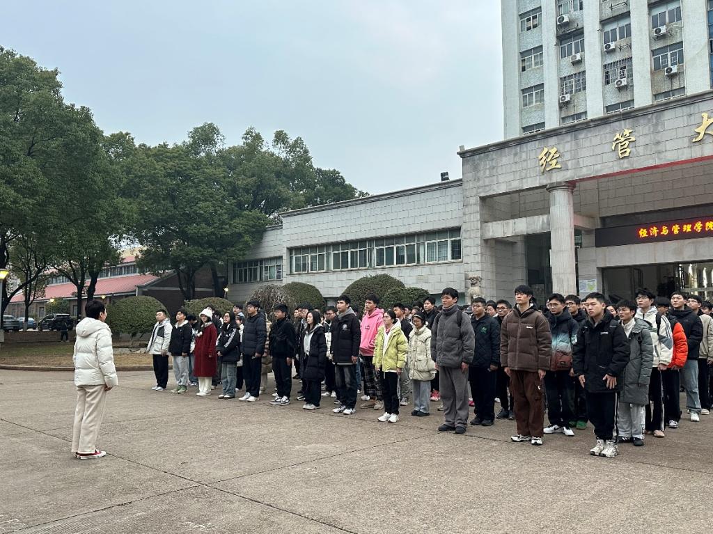 2月24日,计算机学院在金盆岭校区经管办公大楼前坪举行升旗仪式。院党委副书记王觊婧、全体学工办老师、24级200余名同学代表参与此次升旗仪式。