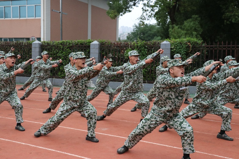 连队首先进行了阶段性训练成果汇报。龙虎连成员分别展示了擒拿拳与匕首操,动作整齐、气势雄健,赢得现场师生的热烈掌声。随后,十六连全体学生高呼口号,并齐声唱响连歌《当祖国召唤的时候》。歌声嘹亮、士气高昂,充分展现了同学们奋发向上的精神面貌。