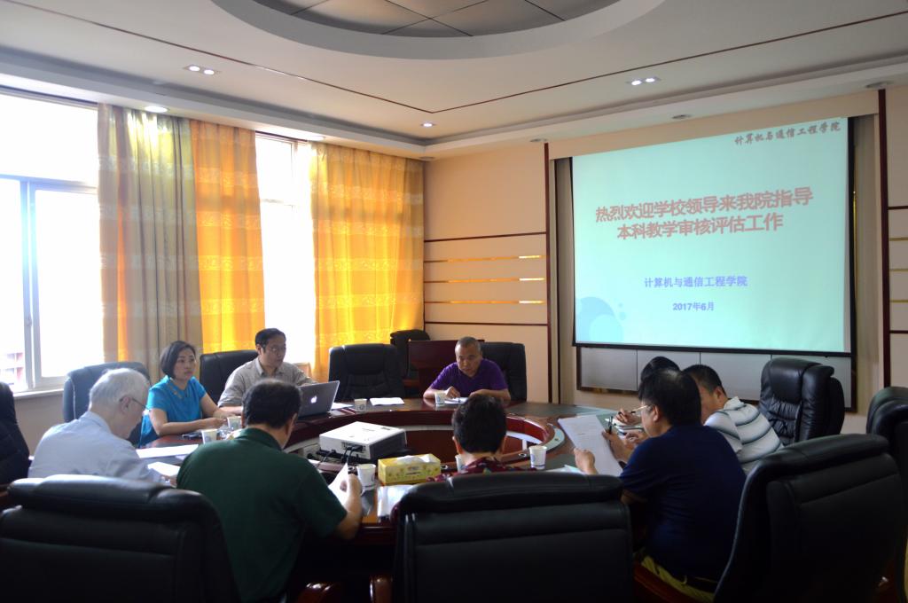 2017年6月29日下午,学校审核评估专家韩理安、程赐胜、郑延恒、李晓明、刘志强及曾洁一行来计通学院进行教学工作审核评估校内诊断性评估。计通学院领导、教授委员会主任、系、实验室主任、重要教学科研平台负责人、各行政科室主任、学院评估工作组成员参加了会议。