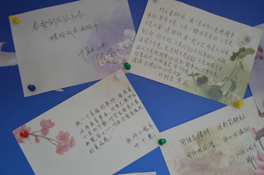 为迎接即将到来的第三十三个教师节,计算机与通信工程学院青年工作部向学院教师发出了“温暖手写体”的邀请,得到了老师们的积极响应。老师们的“手写体”中,有的是对教育的感悟,有的是励志话语,有的是诗词歌赋,有的是个人随笔……