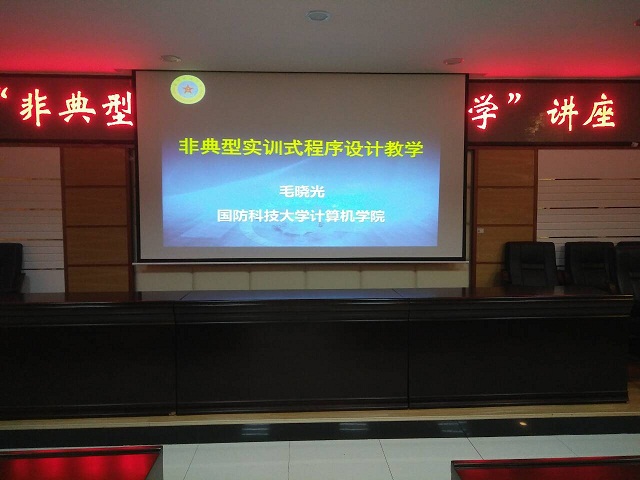 12月12日下午2:30,国防科技大学毛晓光教授应邀在理科楼B-311为我院全体教师做了题为“非典型实训式程序设计教学”的主题报告。活动由教学院长姜腊林教授主持。