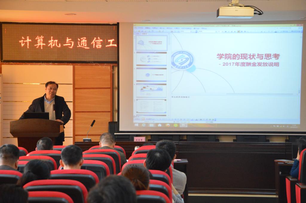 接着,院领导班子围绕人才培养主题分别做了《学院科研现状、对策与发展设想》、《2017年校企合作工作总结及2018年工作思路》、《以人为本促进师资建设工作再上新台阶》、《以学位授权审核为抓手全面提高研究生教学质量》、《抓质量,重创新,提高本科教学质量》、《科学谋划 合力并举 推进学院学生工作再上新台阶》、《学院的现状与思考-关于2017年酬金分配的说明》的深情报告。