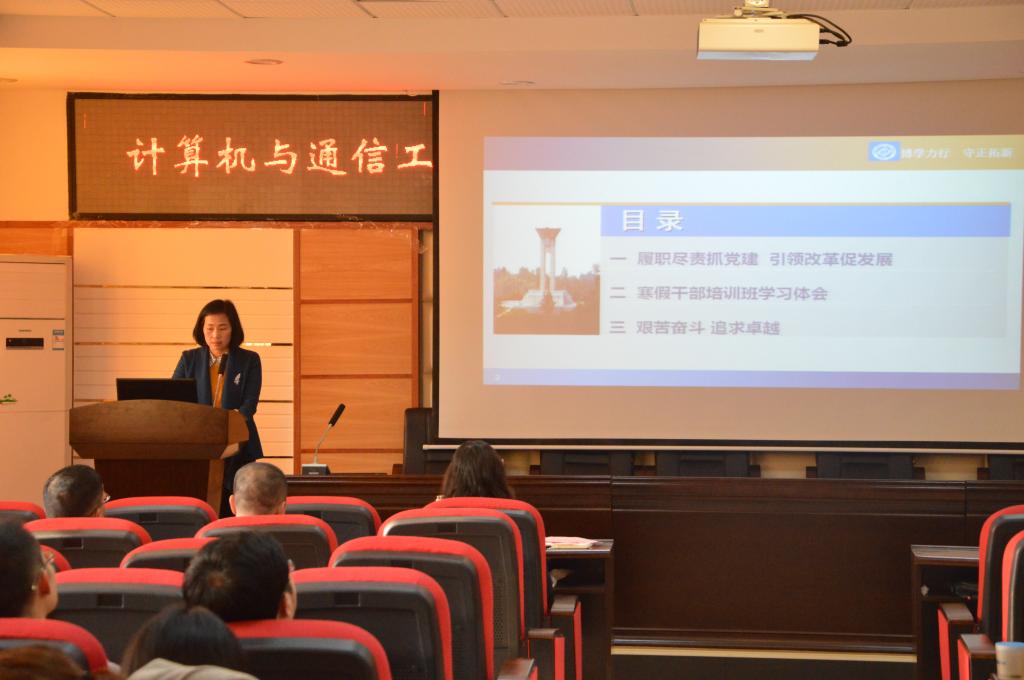 最后方琼书记以《聚精会神、把握机遇 改革创新、艰苦奋斗》对会议进行了总结发言。她从履职尽责抓党建,引领改革促发展、寒假干部培训班学习体会、艰苦奋斗,追求卓越三个方面来展开。她指出学院面临发展的瓶颈,存在着种种问题与不足,唯有改革才能奠定学院在长理的核心地位,只有不停的奔跑,我们才能留在原地。中国经济分明是每节车厢都有动力的动车组,车厢越多速度越快。计通学院的发展也是如此,每位老师都是一节车厢,自带动力,共同推动学院前行!希望全体老师要正视问题,找准方向,补齐短板,克服一切困难,推动学院各项工作再上新台阶!(周思远/图、文)