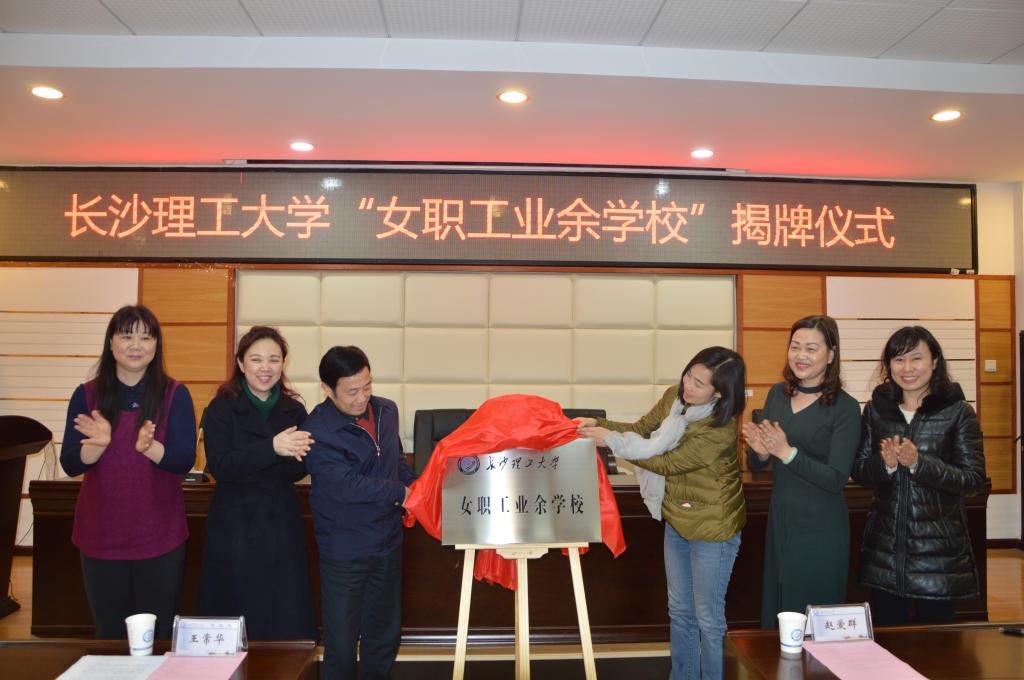 3月20日下午,云顶国际vip8866“女职工业余学校”成立揭牌仪式在理科楼B311举行。湖南省教育工会副主席王常华、湖南省教育工会常委、女工委主任孙晓红、校工会常务副主席曹瑛、计算机与通信工程学院党委书记方琼、校女工委员、部分分工会主席、女职工代表等参加了揭牌仪式。