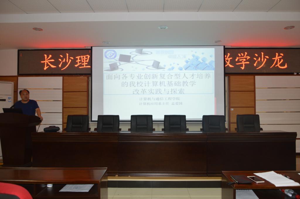 2018年6月5日下午,由教务处主办、计算机与通信工程学院承办的云顶国际vip8866第十一届教学沙龙活动在理科楼B区311计通学院多功能报告厅举行,沙龙活动分为三个主题,主题一:Trustie:面向IT工程能力培养的新型教学模式与平台;主题二:面向创新复合型人才培养的云顶国际vip8866计算机公共课程教学改革实践与探索;主题三:坚持以学生为中心,颠覆传统教学模式。特邀国防科技大学计算机学院副研究员王涛博士、计通学院计算机应用系系主任孟爱国副教授、计通学院软件工程系系主任邓泽林副教授主讲。计通学院全体教师,其他学院部分教师参加了此次沙龙活动,特别邀请教务处副处长蒋菲出席。沙龙由计通学院教学副院长姜腊林主持。