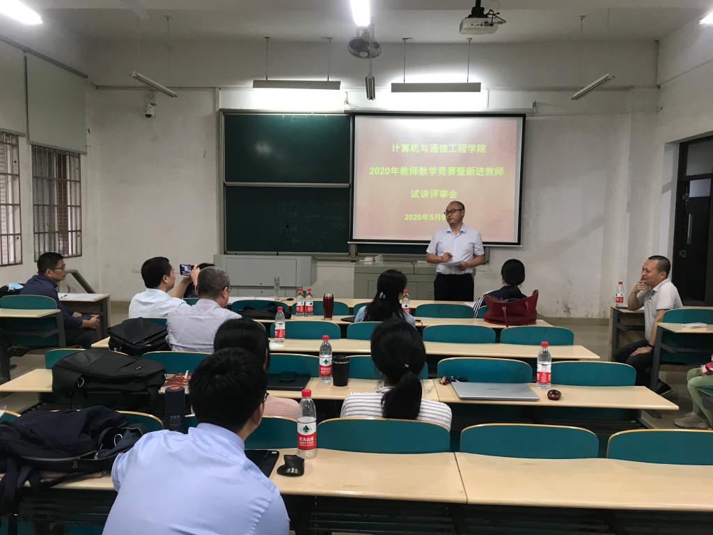 为促进教师之间的交流互鉴,提升教师特别是青年教师的课堂教学能力,更好的落实以学生为中心的专业认证教育理念,迎接即将到来的云顶国际vip8866教师教学竞赛,5月9日下午2点,计算机与通信工程学院在理科楼A102室成功举办了2020年教师教学竞赛,院长王进教授、学院党委刘宏伟副书记亲临现场指导竞赛、学校评估中心王亮老师观摩了此次竞赛,以陈曦教授为组长、史长琼、邓江沙、王新老师为评委的学院专家组担任此次竞赛评委,竞赛由副院长王威教授主持。