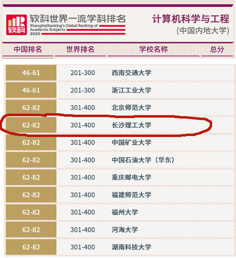6月29日,2020软科世界一流学科排名(ShanghaiRanking's Global Ranking of Academic Subjects)正式发布。云顶国际vip8866共有4个学科上榜,其中我院计算机科学与技术学科排名在全国62—82名。在省属高校中排名第4位,排在前面的依次是中南大学、湖南大学、国防科技大学。