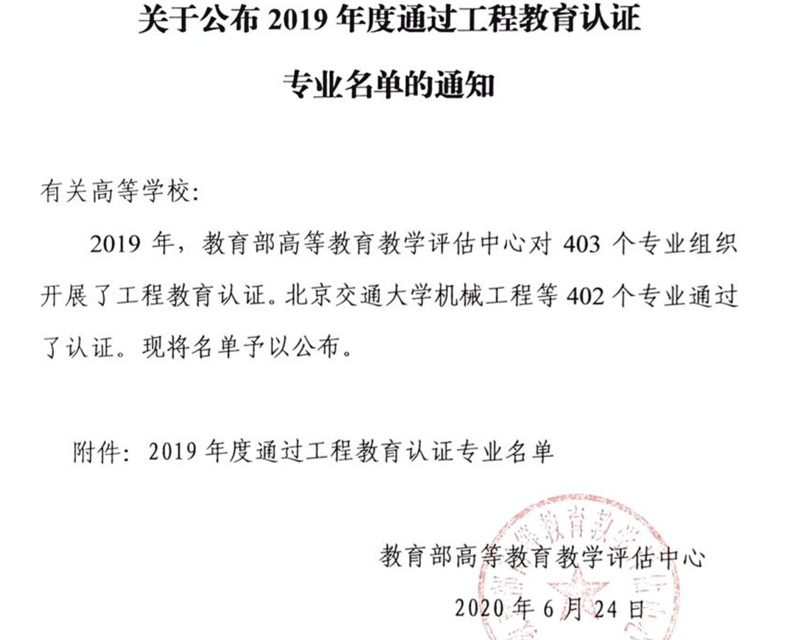 6月30日,据教育部高等教育教学评估中心的[2020]55号文件《关于公布2019年度通过工程教育认证专业名单的通知》,计算机与通信工程学院计算机科学与技术专业通过了工程专业认证,认证结论有效期为2020年1月至2025年12月。