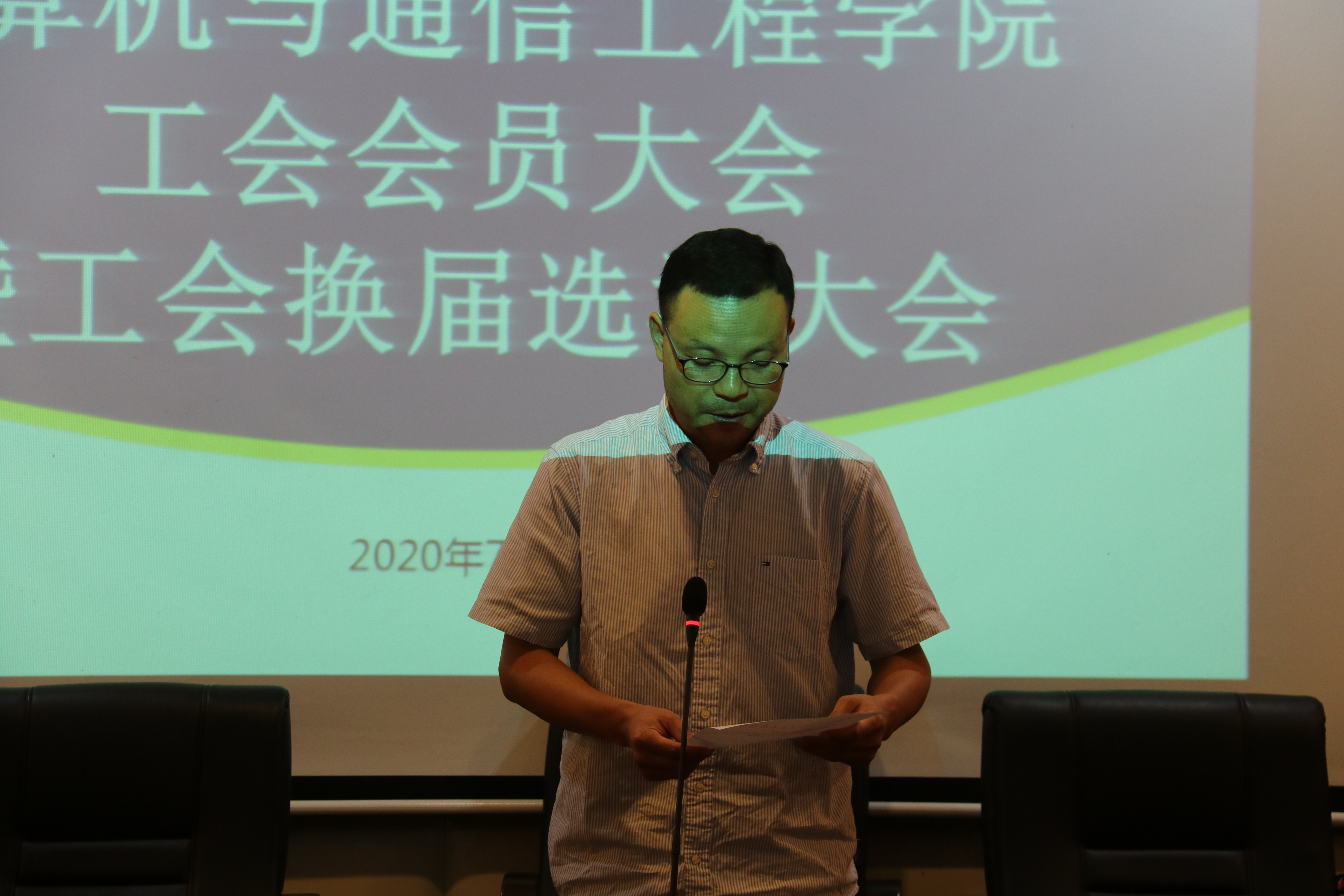 2020年7月7日下午,计通学院在云塘校区理科楼B319召开第2020年工会会员大会暨工会换届选举大会。校工会委员会委员杨敏、全体院领导班子成员、工会会员等100余人参加大会,大会由我院分工会主席涂道勇同志主持。