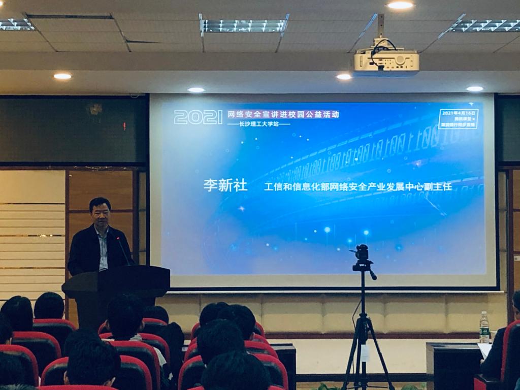 刘宏伟表达了对工信部等各方领导来宾的欢迎和感谢,强调在建党百年的关键时刻、在第六个“全民国家安全教育日”开展网络安全宣讲,对于引导广大青年远离电信网络诈骗、维护广大青年学生网络安全利益、保障国家网络安全有着重要意义。