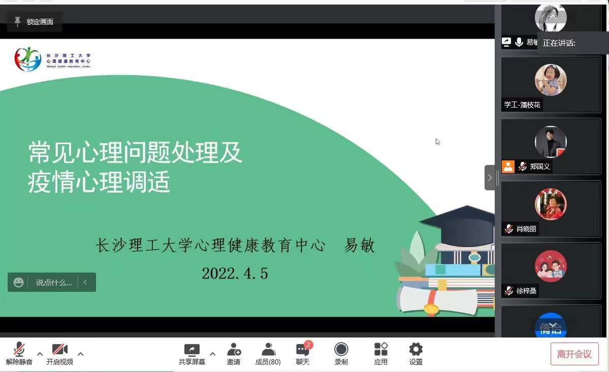 随后,学校心理健康中心老师易敏作“常见心理问题处理及疫情心理调适”主题心理培训,为老师处理相关情况提供有效应对措施。