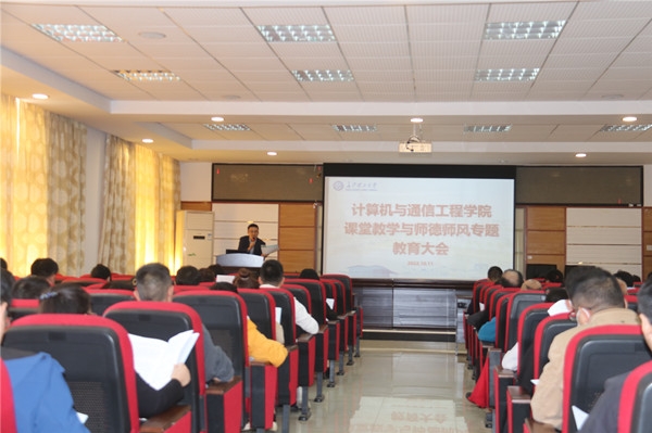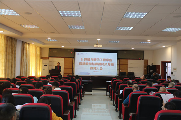 副院长蔡烁在会上发布了《云顶国际vip8866计算机与通信工程学院课堂教学规定》读本,向全院教职工深入解读了《云顶国际vip8866课堂教学规范》、《计算机与通信工程学院规范课堂教学补充规定》。蔡烁强调在疫情防控期间,教师要严格遵守规定要求,做到有情况及时报备,有困难合力解决,紧抓课堂教学不放松,确保教学运转正常,为高质量的人才培养提供保障。