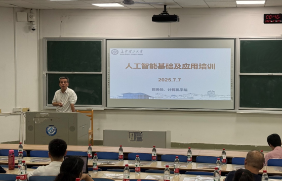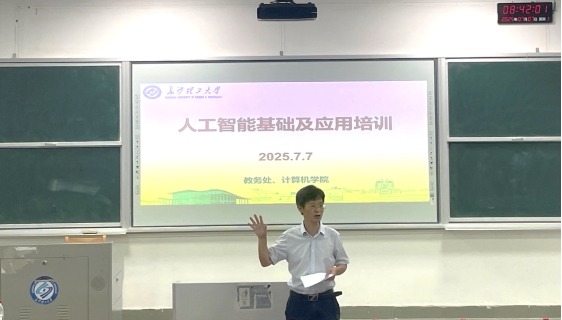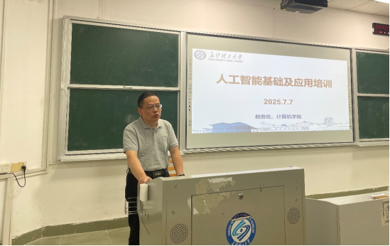 为落实人工智能通识课程建设、深化教育教学改革、提升教师专业能力,7月7日上午,由教务处主办、计算机学院承办的“人工智能基础及应用” 培训课在金盆岭校区6号教学楼210教室开班。计算机学院全体教师以及建筑、水利、经管等学院部分教师参与。培训班为期五天,从7月7日至7月11日,通过专题报告、案例研讨等形式,全面探索人工智能技术的教学方法、科研实践和行业应用。