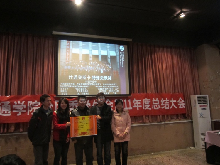 2011年12月28日晚,计通学院在汀香园三楼中西餐厅隆重举办了分团委学生会2011年度总结表彰大会,出席此次晚会的领导有计通学院党委副书记方碧波副教授,还有院学工办主任伍接朝、分团委书记任志祥老师、学工办邵巧艳老师、俞敏老师。全体分团委学生会干部参加。