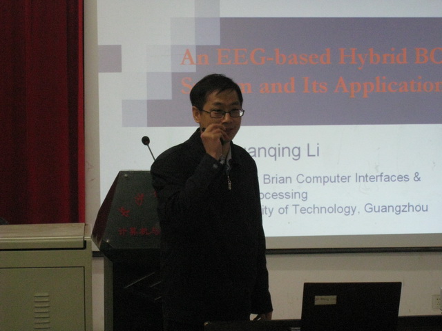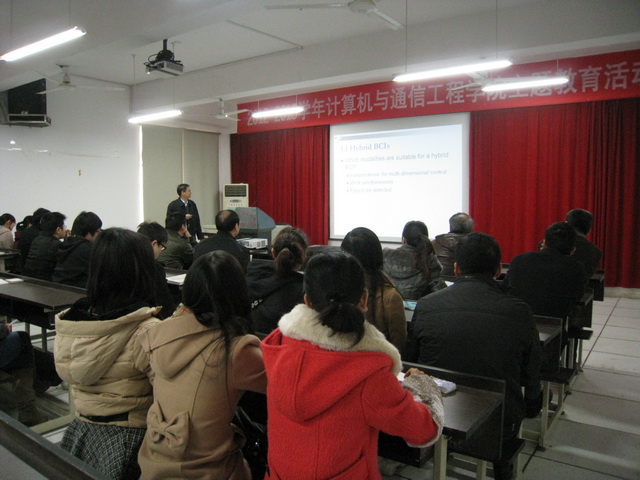 在讲座中,李教授介绍了脑机接口的相关概念和脑机接口的研究现状,并在分析过往研究成果的基础上创造性提出了多模态脑机接口的模型并通过实验论证了其优越性。李教授指出了多模态模型的几项应用:网页浏览,目标选择,轮椅控制,并且通过视频给出了实际的应用过程。最后,他总结了多模态脑机接口的特性并指出了下一步研究的方向。