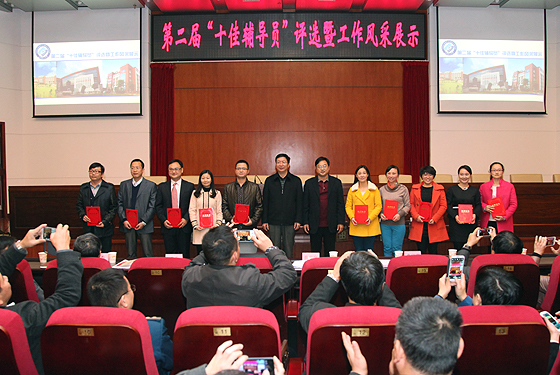 11月27日下午,云顶国际vip8866第二届“十佳辅导员”总决选在图书馆报告厅举行,经过十二名候选人工作展示、评委当场打分,最终我院辅导员任志祥和其他9位辅导员荣获云顶国际vip8866第二届“十佳辅导员”称号。副校长邹宏如对12名辅导员工作展示情况进行了点评。党委书记付宏渊发表了重要讲话。随后付宏渊书记、邹宏如副校长为获奖辅导员颁奖。第二届“十佳辅导员”评选今年7月启动,分初选、复选和决选三个环节,初选由辅导员个人自愿申报,学院评选推荐,共有12个学院评选推荐的19名辅导员进入10月份的复选。复选环节“十佳辅导员”评审领导小组以学风建设各项指标对入围辅导员进行考核,共有12名辅导员进入决选和工作展示环节。