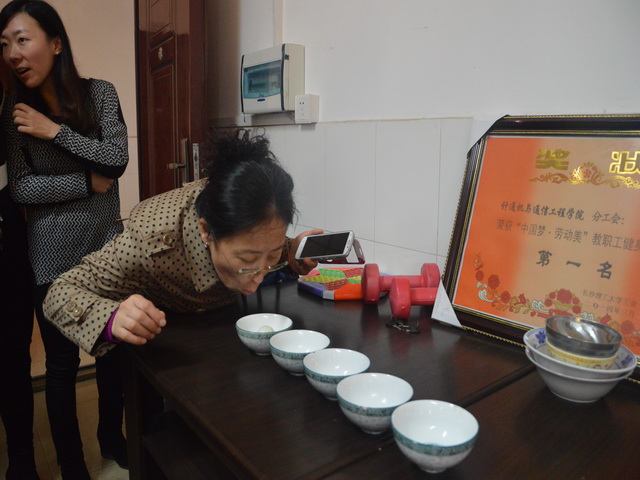 计算机科学与技术系、通信工程系、网络工程系、软件工程系、计算机应用系、实验中心以及行政分工会分别组队参加了包括定点投篮、攻擂守擂、圆桌接力、吹乒乓球等趣味比赛项目。活动的场地很简陋,道具也很简单,但是同志们参与的热情很高,各项活动的参赛点都可见人头攒动,欢声笑语。定点投篮中,实验中心和行政分工会并驾齐驱,以10球的成绩取得第一;在圆桌接力项目中,通信工程系团结一心,力拔头筹;吹乒乓球活动上,软件工程系以6秒的微弱优势险胜行政分工会斩获头名;在攻擂守擂赛里,