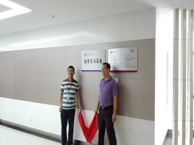 会上,李峰院长和陈湘鄂总经理签订了院企合作协议,并向湖南省邮电规划设计院公司授予了“校外实习基地”牌匾,一起共同揭牌。
