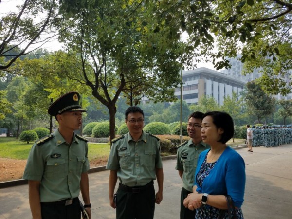 方琼书记还关切地询问伤病同学的身体状况,叮嘱他们要注意身体,鼓励他们克服困难,在军训中提升自己的意志品质,努力完成军训任务。同时,方书记对新生的表现与吃苦耐劳的坚强意志给予了表扬,并殷切希望同学们通过军训积极学习军人的优良作风,树立集体意识。