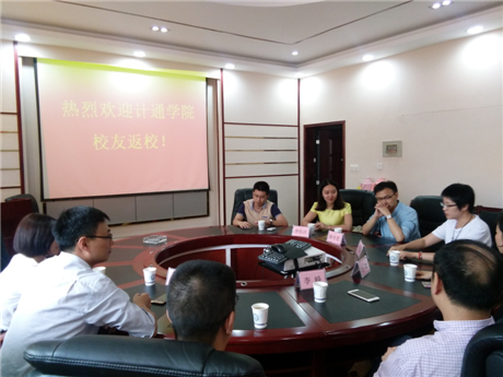 10月9日下午,计通院在理科楼B502举行了建校60周年校友返校座谈会。院长李峰、院党委书记方琼、院党委副书记王任飞及负责教学和管理工作的各位老师出席了本次座谈会。各位校友再回母校,是为了见见阔别多年的老师和同学们,看看长理现在的样子,更是想为长理发展再尽一份自己的努力。
