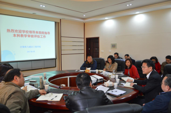 李峰院长按照审核评估的七大要素汇报了我院本科教学评估的工作进展情况以及存在的问题和解决的方案。重点介绍“面向问题求解的课程体系重构”课程群建设的特色及实施方案、计通“云学宝”在教学过程监督方面的卓越功能、以及严肃考试系统及题库在考教分离,考试改革中发挥的重要作用。各位专家对我院在办学定位、培养目标、师资力量、教学资源、培养过程、学生工作、质量保障以及学院特色等各方面均提出了非常具体而中肯的指导意见。刘朝晖处长建议我院应充分利用学科特色,切实加强校企合作办学,思考如何在培养体系上体现知识和技术的更新以及计通“云学宝”使用后收集其对学生学习效果上所起的作用。叶泽副校长肯定了我院在此次本科教学审核评估中所做的前期工作,要求我院以本次审核评估工作为抓手,认真把握我院本科教学的现状,以学生职业发展为核心,充分调动和提高老师们的积极性,全面提高本科教学质量,致力于培养出更加优秀的人才。
