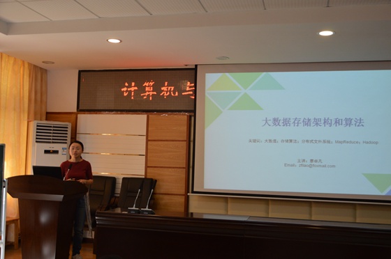 软件工程系廖卓凡老师随后为大家介绍了“大数据存储架构与算法”这一领域的学界动态。廖博士对当前国内外大数据存储机制研究现状进行了综述,总结分析了当前存储算法的优劣,并根据自己的研究展望了该领域未来的发展方向。