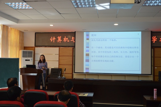 软件工程系黄园媛老师的一堂示范课开启了此次活动。姜腊林教授随后从教学思路设计、语言表达、课件制作三个方面对黄老师的示范课进行了点评。通过这次示范课展示,在座的每位教师都对如何让教学成为科研的“隐形动力”,让科研成为教学的“源头活水”,让两者相辅相成、相互促进等问题进行了认真的思考。