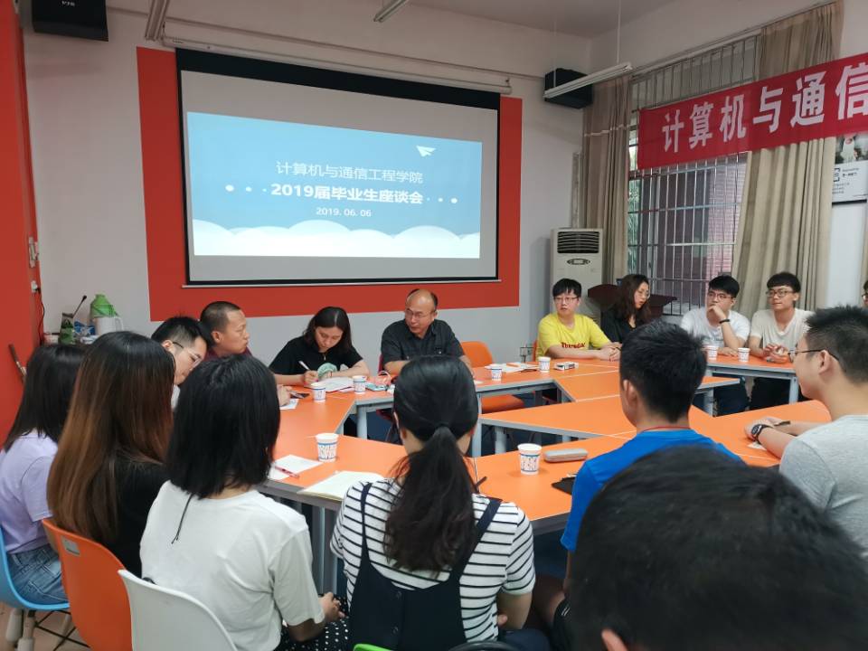 6月20日下午两点,计通学院2019届本科、研究生毕业生代表座谈会在学院B103举行。党委书记甘为、副院长王威、院党委副书记兼副院长陈华及辅导员老师潘枝花、易亭亭与毕业生代表相聚一堂,共叙大学几年的学习生活和成长感悟,对学校和学院的教学、管理等各方面提出自己的意见和想法,共同探讨学院的发展建设。在轻松愉快的交流氛围中,毕业生代表畅所欲言,结合自身实际情况,对各专业培养方案、课程设置、实践实习、活动能力提升、学生管理、宿舍及专教生活等方面提出了合理化建议。同时也表达了对学校、学院的不舍与感恩之情,感谢在成长之路上关心与帮助自己的老师与同学,希望自己的提议能够为学院更好的发展出一份力。在与毕业生代表的亲切交谈中,甘书记、王院长陈华书记及辅导员老师也就同学们的意见给予解答,承诺将不断改进和有效解决同学们提出的问题,在后续的教育教学及学生工作中进一步的落实与完善,并对毕业生们提出的诚恳意见和合理建议表示感谢。此次活动不仅拉近了师生之间的距离,让同学们将多年学习生活中的遇到的问题及期望一一反馈给学院,也使学院能够更全面的了解同学们对学院教学及学生工作的看法,为学院接下来更好的发展提供了宝贵的参考意见。