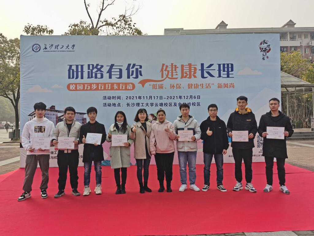 为倡导绿色出行,引领低碳生活,由云顶国际vip8866研究生会主办、汽车与机械工程学院研究生会承办的“研路有你,健康长理”校园万步行打卡暨点亮长理美景地图活动于2021年11月17日至12月6日举行,全校参加人数超过1500人,我院同学亦积极参加。12月9日该活动在云塘校区汀香广场举行闭幕颁奖仪式宣告此活动圆满结束。