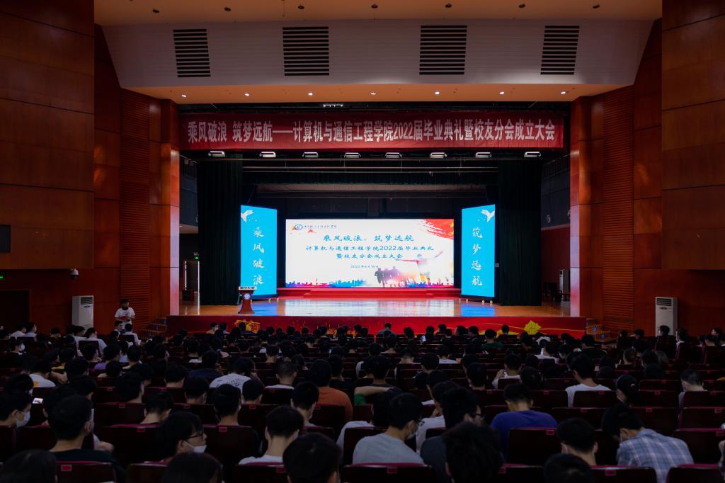 6月16日下午,计通学院于云塘校区大会堂举办“乘风破浪,筑梦远航”2022届毕业典礼暨校友分会成立大会。校友中心领导王静琦、关工委领导蔡立新、计通学院党委书记孔伟红、院长张锦、党委副书记王觊靖、副院长夏卓群、章登勇以及各毕业班班主任、任课老师、学工办老师出席,2022届全体本科毕业生和研究生毕业生参加,大会由金祎萌主持。