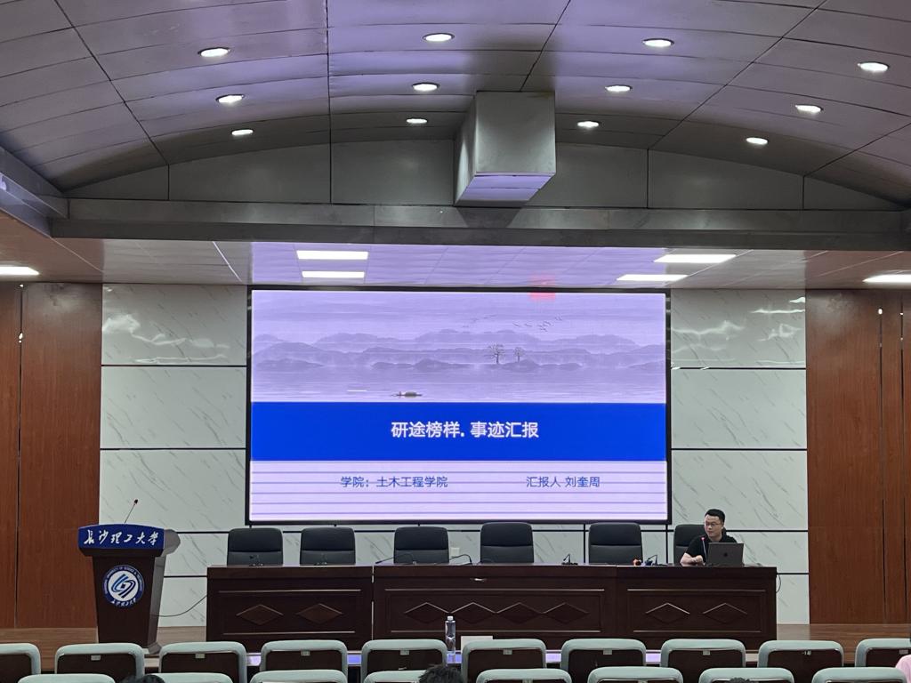 土木学院刘奎周分享了他的科研经历和人生感悟,他认为懒惰是学习上的劲敌,我们要不断的努力,要坚信贫瘠的梦想总会开出绚丽的花朵;