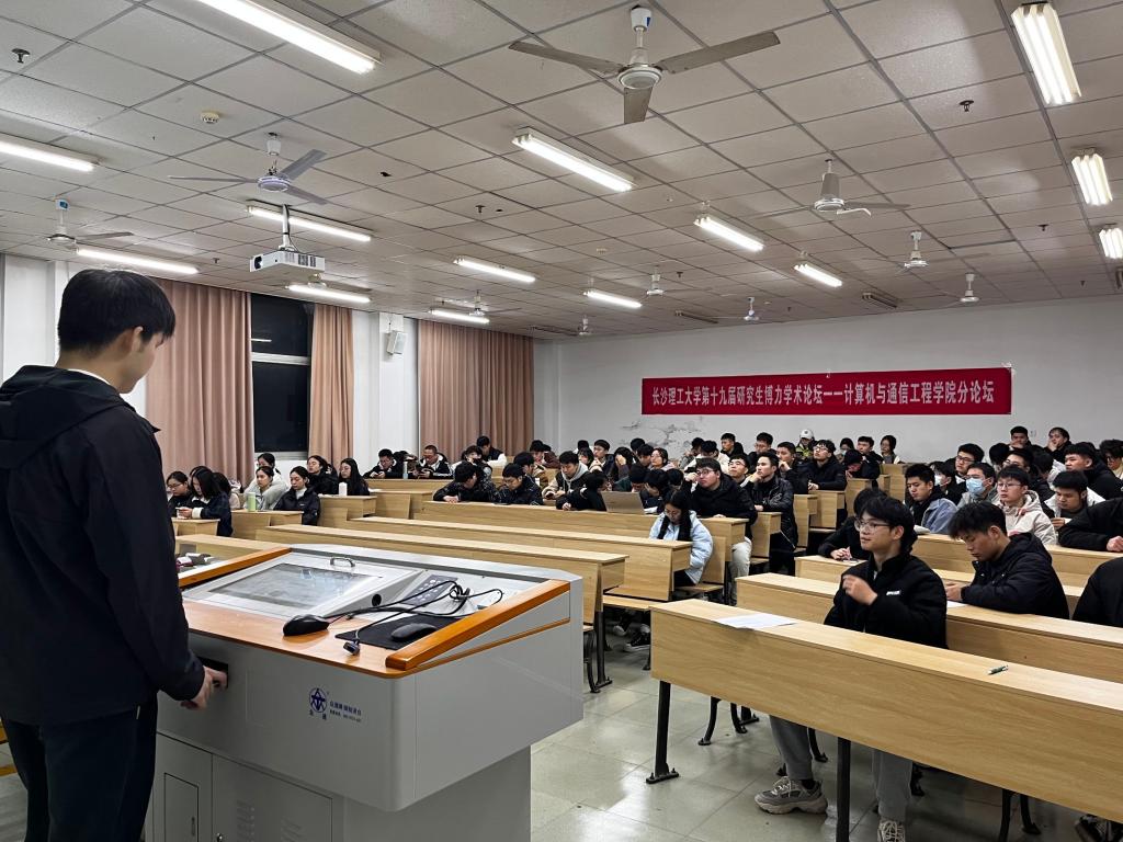 为了营造良好的学术创新氛围,提高学生的学习兴趣和学术创新参与率,活跃学术思想,引发学术争鸣,促进学术交流。计算机与通信工程学院于2023年12月13日晚上19:00,在金盆岭校区电苑楼201举办博力学术论文-研究生创新大赛分享会。本次报告会由学院研究生辅导员郑国义老师主持,2023级全体研究生参加本次经验分享会。