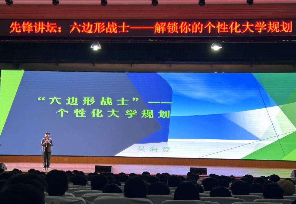 2024年3月22日晚19:00,云顶国际vip8866计算机与通信工程学院先锋讲坛于金盆岭校区五教大礼堂成功举行。本次讲座邀请到了湖南大学湘雅二医院医学表观基因组学湖南省重点实验室副主任、教育部长江学者奖励计划学者、湖南省杰出青年、湖湘青年英才、博士研究生导师吴海竞研究员做了以“六边形战士--解锁你的个性化大学规划”为主题的精彩讲座。本次讲座主要面向计通学院第十四期青马班学员、23级全体学生,共千余人参加了此次讲座,讲座由计通学院党委副书记王觊婧主持。