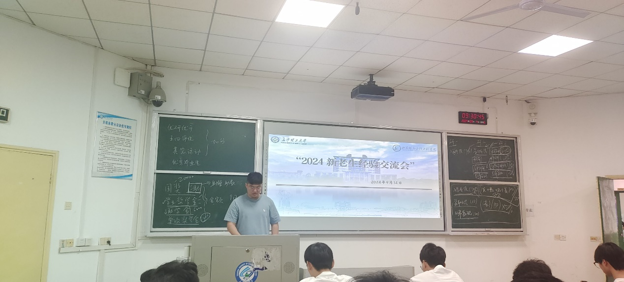 会议开始,易亭亭简要介绍了新生开学的整体日程安排,讲解了几次重要入学教育会议的时间规划,并为本次交流会拉开序幕。老生代表们依次分享了他们在学习、科研与生活各方面的宝贵经验。首先,2023级研究生党支部书记针对同学们普遍关心的入党问题,详细讲解了入党的具体流程,并鼓励同学们在研究生阶段积极参与集体活动,注重实践,提升个人的综合竞争力。接着,研三代表深入介绍了学业奖学金的评选标准,易亭亭则进一步补充了其他奖助学金的评选规则,帮助新生们全面了解各类资助体系。随后,班委代表为大家分享了班委的日常工作内容,并就如何处理生活中的困难与挑战提供了切实可行的建议。最后,研究生会代表详细阐述了研究生会的组织架构,并鼓励同学们积极展示自身优势,主动与导师和同学保持沟通,注重自我反思与成长。在结尾的互动环节中,老生代表们针对新生们提出的疑问进行耐心解答,并以切身经验为他们提供了宝贵的建议。交流会在老生代表们的诚挚祝福中圆满结束,老生代表们也希望全体新生能够珍惜三年的研究生时光,努力学习、提升自我,最终学有所成、收获硕果。
