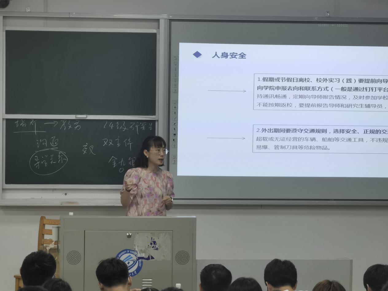 为加强研究生的安全意识,提高道德法纪观念,弘扬爱国爱校精神,2024年9月19日上午9:00,计通学院2024级研究生入学安全教育和年级大会于云顶国际vip8866金盆岭校区6号教学楼108教室举行,本次主题教育的主讲人为辅导员易亭亭,全体2024级研究生积极参与。