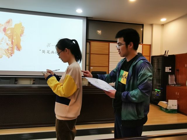 活动伊始,主持人简单介绍了活动背景及活动流程。本次活动包括四个环节,分别是“简笔画接力”小游戏“你笑起来真好看”杯子舞“暗示效应”心理小实验PSTR心理压力测试。第一个环节是“简笔画接力”小游戏。两人一组,其中一人手拿一张A4纸,另一人在背上用手指进行简笔画创作,前一位同学根据一笔一划的感受将简笔画在A4纸上呈现出来,最后对比每组成员的作品。游戏过程中同学们欢笑不断,在默契配合中走近彼此,在思维的碰撞中激扬青春。第二个环节是“你笑起来真好看”杯子舞,大家通过观看视频教程,学习“你笑起来真好看”杯子舞并进行自由练习。“你笑起来真好看,像春天的花一样……”以扣杯声作为伴奏,融入拍掌、敲桌增强节奏感。在调节情绪的同时还可以有效锻炼手脑协调性。同学们随着美妙的音乐,利用手中的杯子、通过集体的配合演奏出一段非常美妙的音乐,杯子在空中划出炫彩的弧线,让大家在轻松愉悦的节奏中感受律动,感受团体的力量。第三个环节是“暗示效应”心理小实验,同学们根据引导词感受身体的变化,最后效果越显著的表明越容易受到心理暗示。引导学生们在生活中,学会积极的我暗示,帮助学生增强自信自我效能感,从而更有信心和勇气面对挑战难题。最后一个环节是PSTR心理压力测试,同学们10-20分钟的时间完成PSTR心理压力测试量表对照测试结果了解自己的压力情况。引导同学们面对压力与选择、挫折与否定,学会了解自己、接纳自己,排解危机,懂得在不断的坎坷中成长是我们的必经之路。