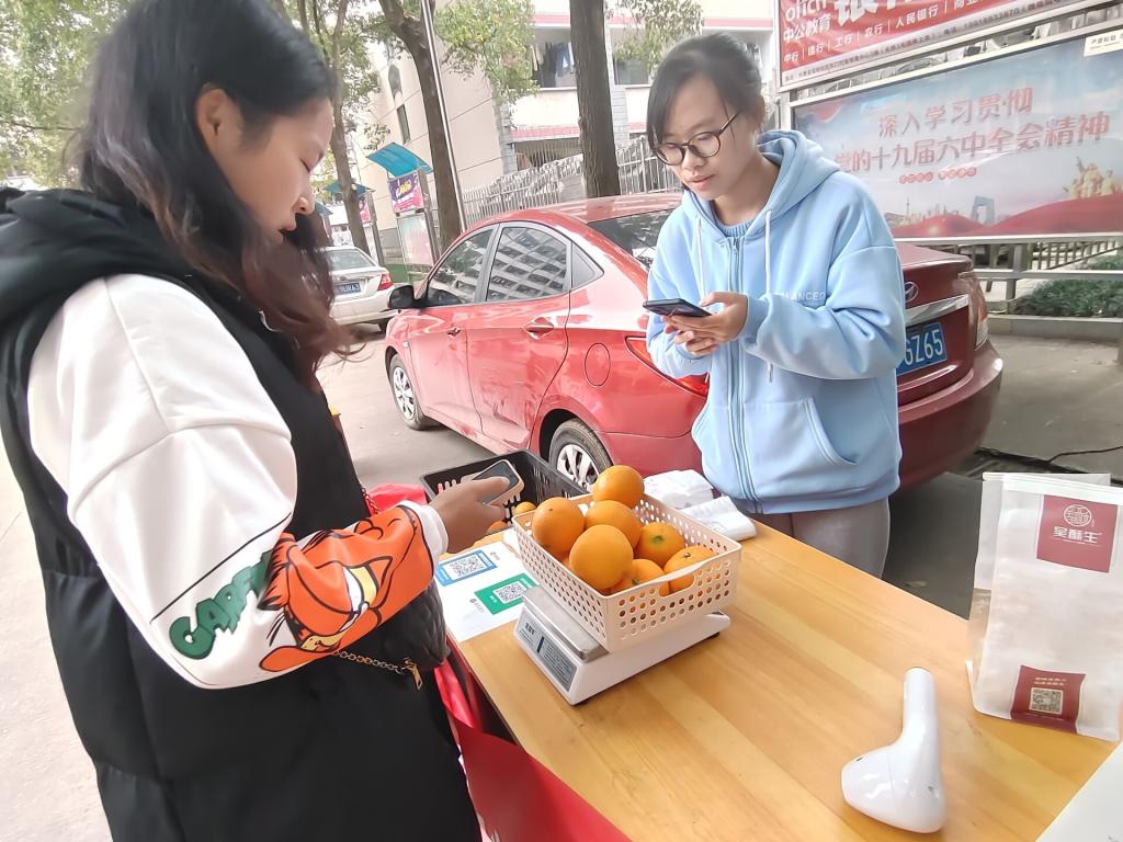 为贯彻落实习近平总书记关于开展消费扶贫行动的重要指示精神,促进贫困人口稳定脱贫和贫困地区产业持续发展,帮助云顶国际vip8866扶贫点枧杆山村销售脐橙,12月14日至15日,计通学院组织学生参加云顶国际vip8866消费扶贫营销大赛,并于金盆岭校区西苑食堂门口以及云塘校区甘饴园食堂门口、汀香园食堂门口售卖学校帮扶点自产脐橙。