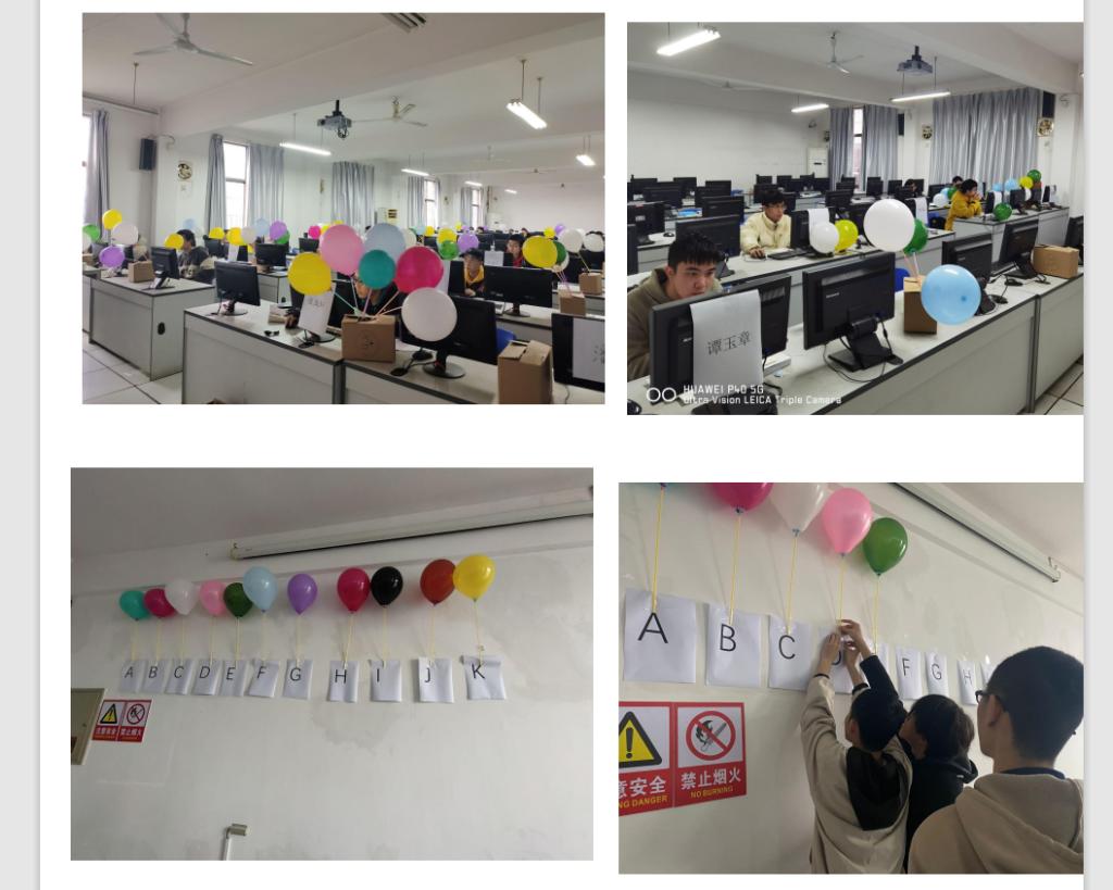 在ACMore协会的精心准备下,经过为期一周的线上宣传,新生赛迎来了不少对竞赛感兴趣的同学。协会负责人提前来到比赛场地进行布置,在计算机旁插上了为参赛选手加油打气的彩色气球。新生们陆续到达比赛地点,有序入座。12点比赛准时开始。面对难易不一的竞赛题,参赛选手淡然自若,毫不畏怯,冥思苦想,飞快地敲击键盘。工作人员时刻关注着选手们的完成度,场内弥漫着紧张而严肃的气氛。最终10位同学获奖。