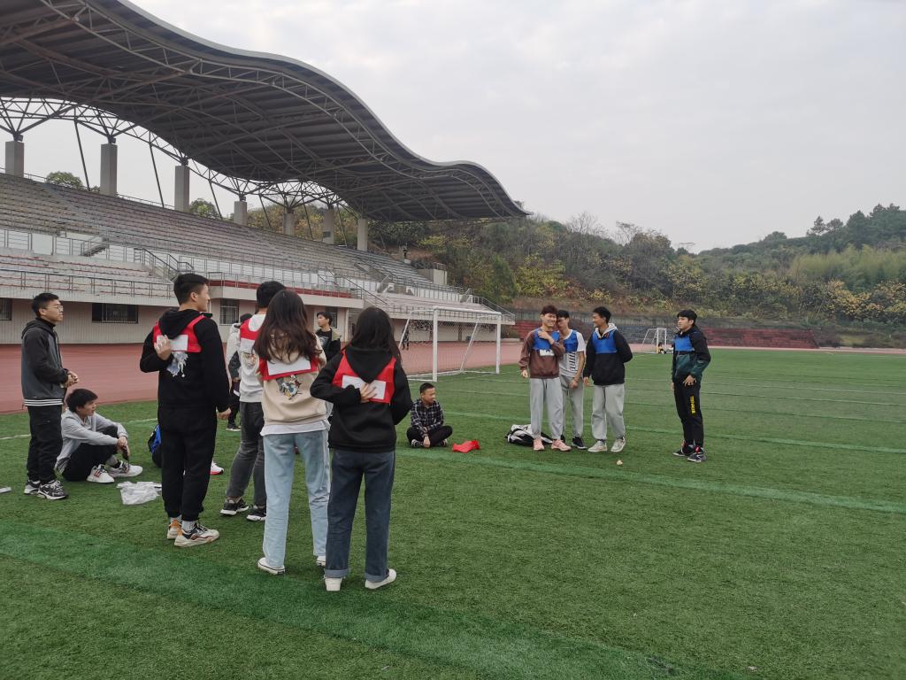针对第二学期专业课较多、课业更为紧张的特点,学院指导心理委员组织班级建心活动,活动环节包括“奔跑吧IT人”,“猜名片”活动。前者需要所有同学一前一后手脚相连共同跑完一圈,考验每个人的专注力和团队合作默契,后者需要大家明确小组目标,给出一定线索,让大家猜出本组每个人的核心目标词,如“考研上岸”“大厂offer”。