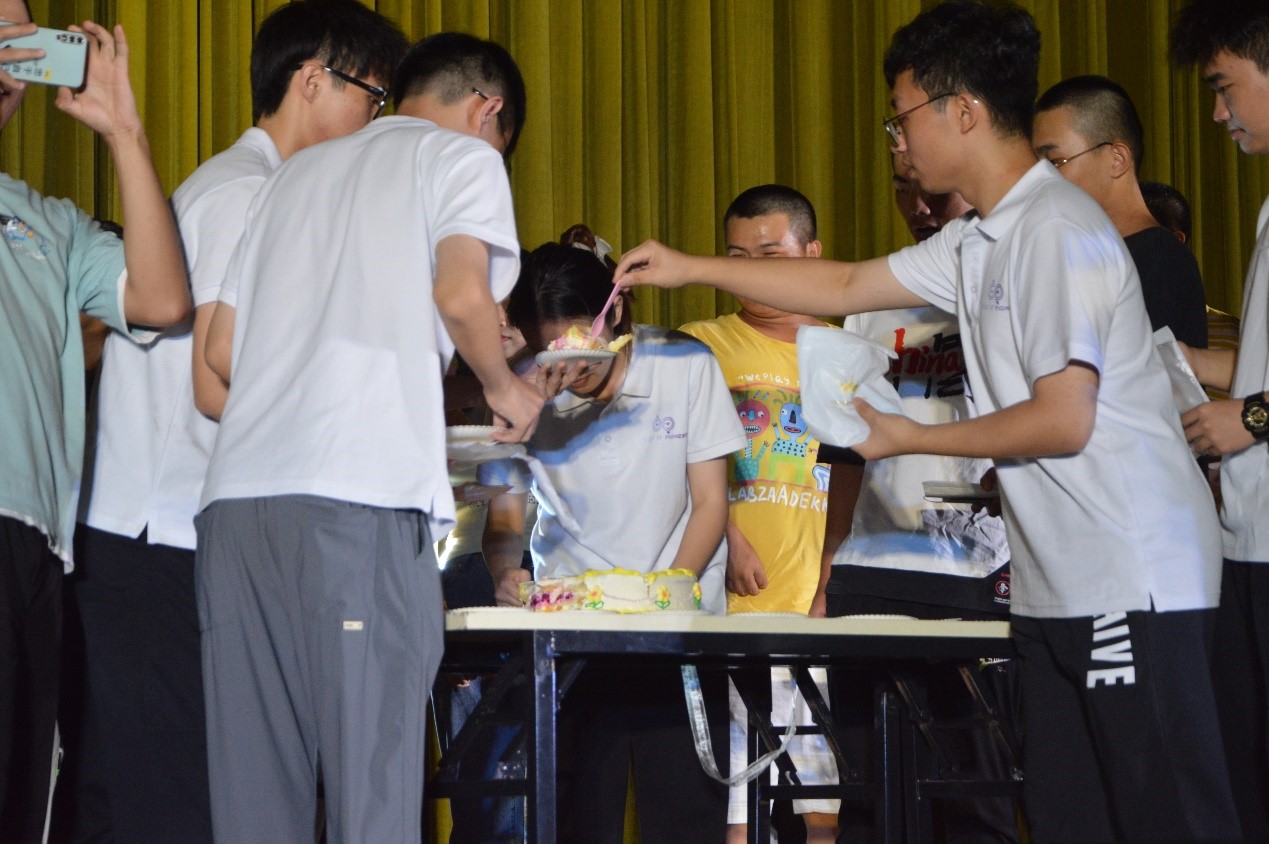晚会中,王觊婧、齐铁钧作为神秘嘉宾,用《红豆》、《独家记忆》为同学们送上了来自学工团队的惊喜演出,赢得了同学们如潮般的掌声。余泽宇用一首《让我留在你身边》热情欢迎了同学们的加入,并向全体新生许下了“一直陪伴大家”的暖心承诺。晚会最后,余泽宇带领现场全体同学为军训期间生日的新生送上了生日祝福。